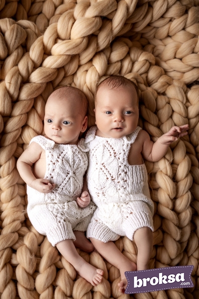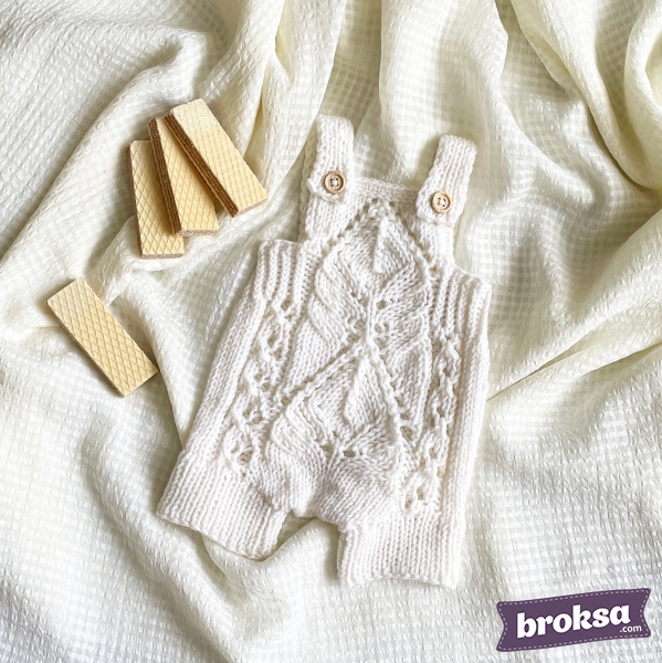 Este delicado pelele, confeccionado con suave lana de merino, está diseñado especialmente para las primeras sesiones de fotos de su bebé. Un elegante patrón de estilo japonés, tejido a mano, adorna la parte delantera, añadiendo un toque único a la prenda. La lana es completamente antialérgica y los cómodos cierres de botones garantizan el confort durante la sesión.