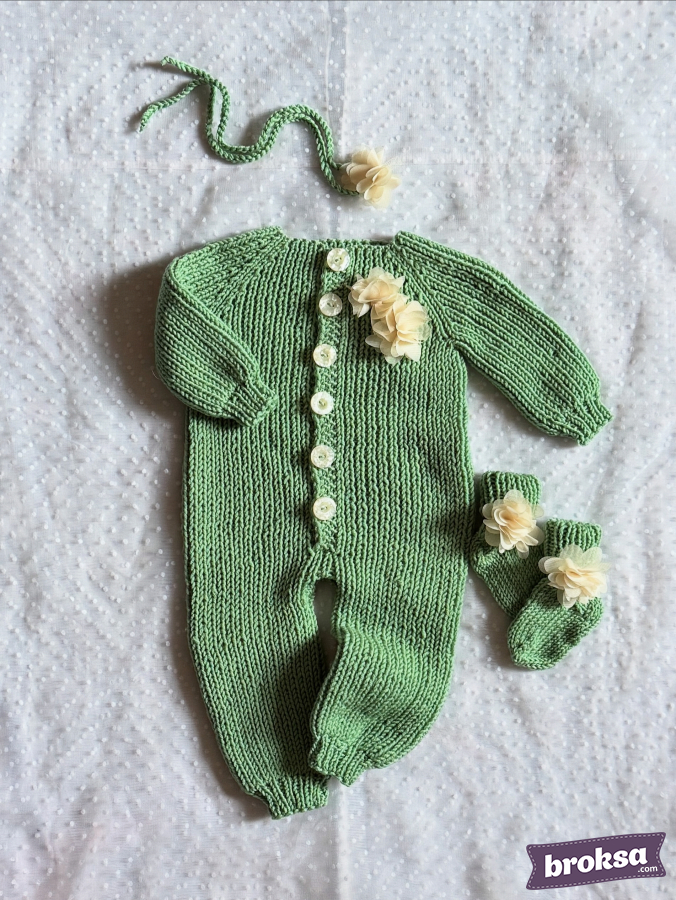El mono de manga larga se adapta sin arrugas y mantiene las proporciones naturales de la muñeca. La textura uniforme de la tela con un sutil brillo, puños cuidadosamente rematados y una hilera de botones perlados confieren al conjunto una elegancia discreta. Las flores de color crema en el pecho y en los calcetines añaden un acento festivo, y una diadema fina con una flor completa el estilo. Esta ropa es para muñecas de colección, que se ve impecable en la vitrina y en las fotos, perfecta como prenda de punto exclusiva para muñecas reborn y muñecas bebé.