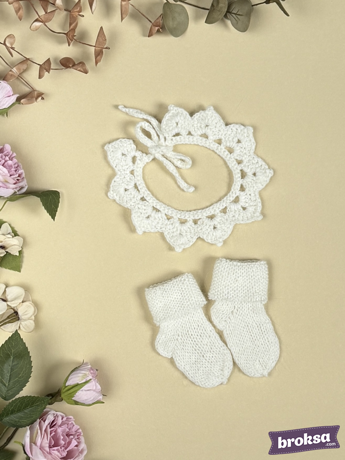 Contenido: jersey, cuello de encaje con cintas, pololos tejidos, calcetines
