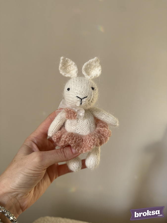 Para tus tomas, te propongo un tierno conejito tejido con una faldita rosa y esponjosa. Tono cremoso, textura suave, ojos y naricita bordados. Altura ideal para primeros planos y manitas infantiles. El accesorio aporta delicadeza a las fotos de muñecas reborn y de recién nacidos. Los materiales seguros resultan agradables para la piel.