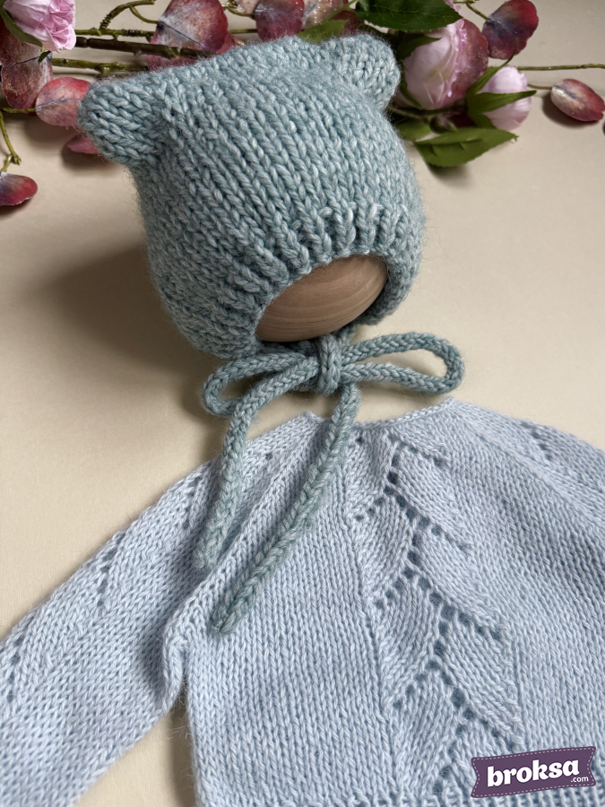 Contenido: suéter, pantaloncitos, gorrito con orejitas y cintas para atar